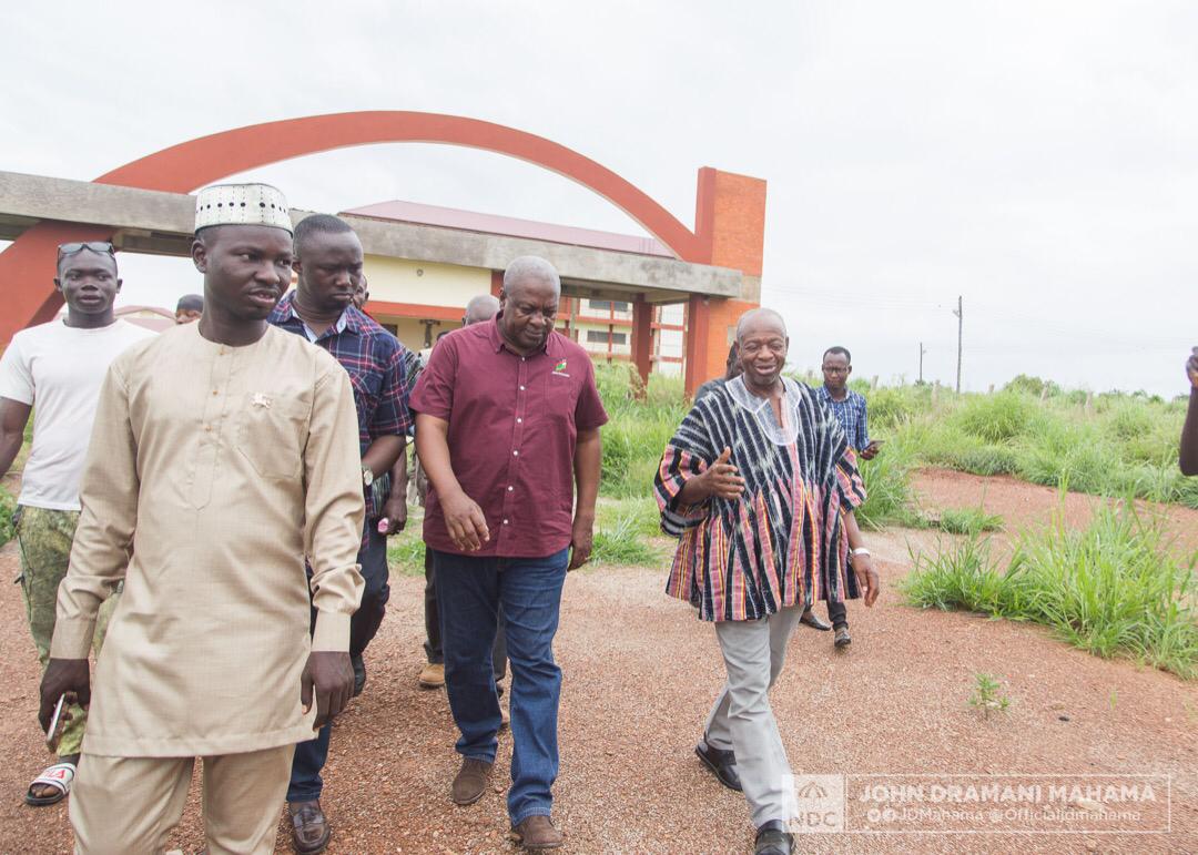 Former President John Dramani Mahama and flagbearer of the opposition National Democratic Congress (NDC), who is on a two-day working visit to the Savanna Region as part of his campaign for Election 2020 on Monday visited the Community Day School project at Mpaha in the Yapei Kusawgu Constituency reportedly abandoned by the current government.