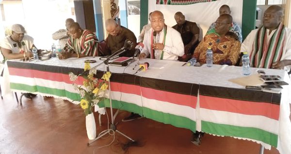 Mr Okudjeto Ablakwa (middle) addressing journalists in Ho.