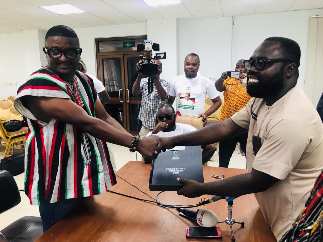 A deputy General Secretary of the NDC, Peter Otukonor presented the form to Mr William.