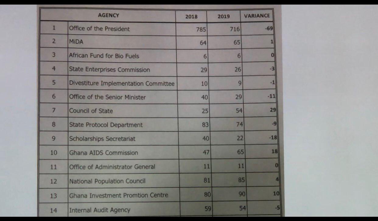 “Specifically, Office of the President for the avoidance of doubt is expected to reduce by 69 by end of 2019,” he said.