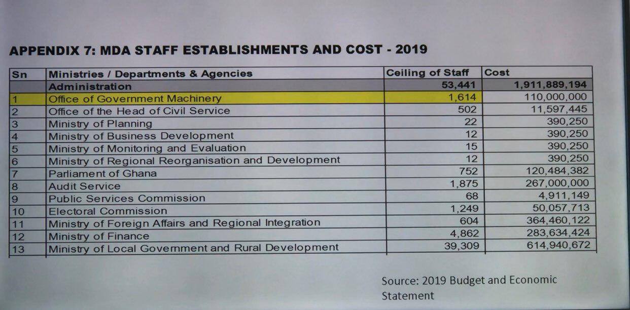 The then Information Minister, Dr Mustapha Abdul-Hamid argued that in 2017 for instance, the budget for government machinery was Gh₵1.5 billion under President Nana Addo Dankwa Akufo-Addo as against President John Mahama’s Gh₵3 billion in 2016, with lesser staff numbers at the Presidency.