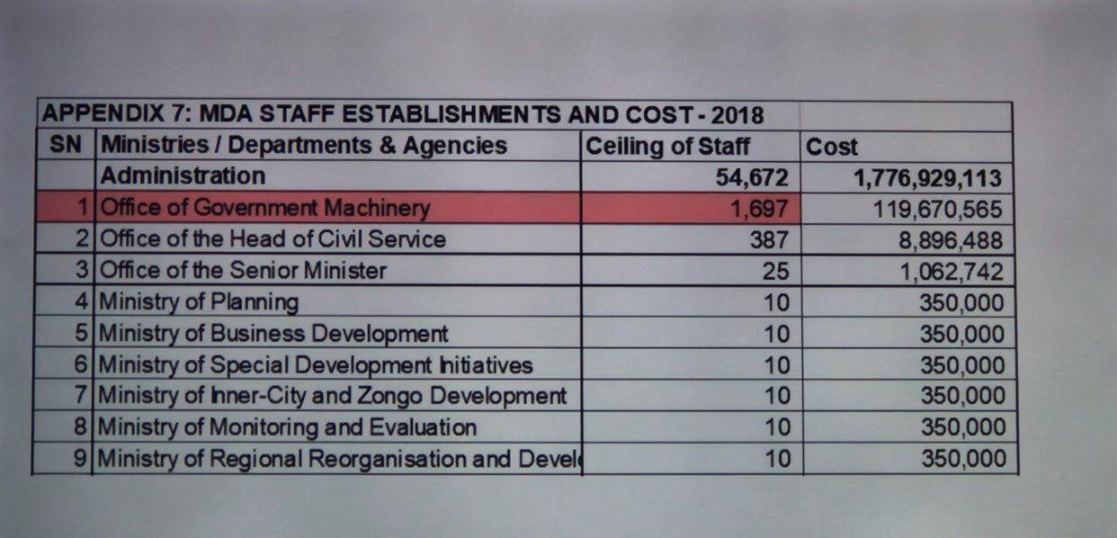 - Contrary to the claim, Staff numbers at Office of the President and Even the Office of Government machinery are rather going through a programmed reduction.