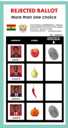 2. A ballot paper with more than one mark, i.e. the voter thumbprinted for more than one candidate.