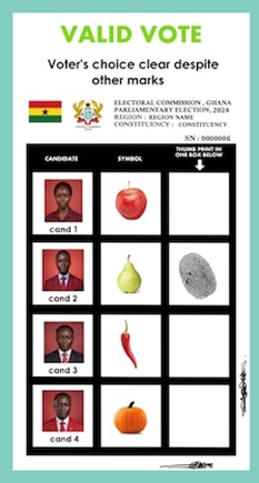 3. A ballot paper with a mark making it difficult to determine the choice of the voter, i.e. the mark strayed into another candidate’s box.