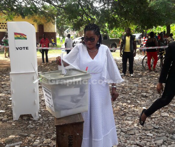 First Lady, Lordina Mahama voted at the Rangoon polling station at Cantoments in Accra
