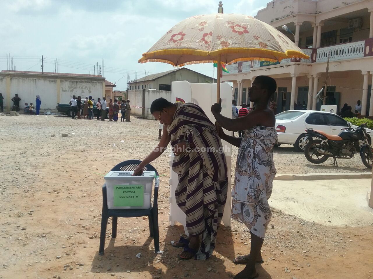 At exactly 12.00pm, the Offinsohene, Nana Wiafe Akenteng III, joined voters at the Old DASS "A" Polling Station to exercise his franchise.