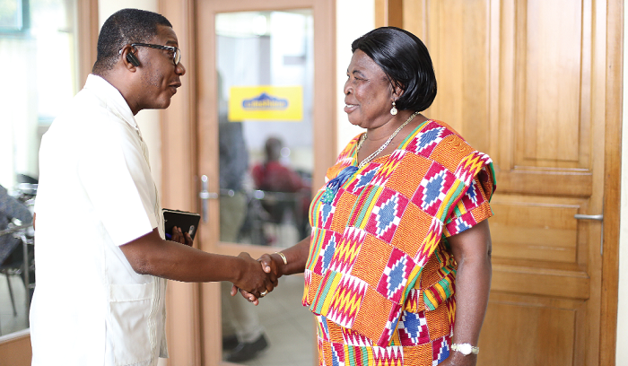 Mr Kobby Asmah, Political Editor, interacting with Madam Akua Donkor, founder and leader of Ghana Freedom Party (GFP)