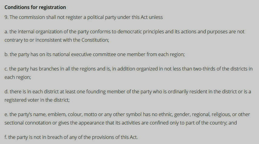 “If a political party is serious, the first thing you are supposed to do is to satisfy the constitutional requirement of your land, ok, because that is the same constitution that you are going to use to work… so if you don’t believe in that constitution what other constitution do you want to believe in? That shows you are not a serious political party. Seriousness has something to do with abiding by laws and regulations and commitment to our land and constitution so any party contrary to that is not a serious political party, in my opinion”, he said.