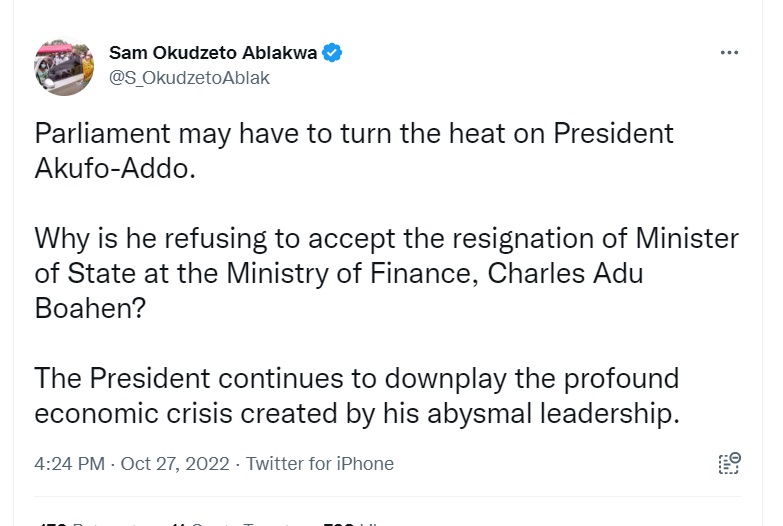 — Sam Okudzeto Ablakwa (@S_OkudzetoAblak) October 27, 2022