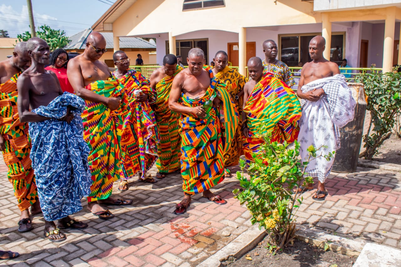 Daasebre Kwebu Ewusi VII then instructed the linguist to pour libation and say a traditional prayer to invoke the spirit of the ancestors to help and support Mr Kojo Bonsu in all his endeavours.