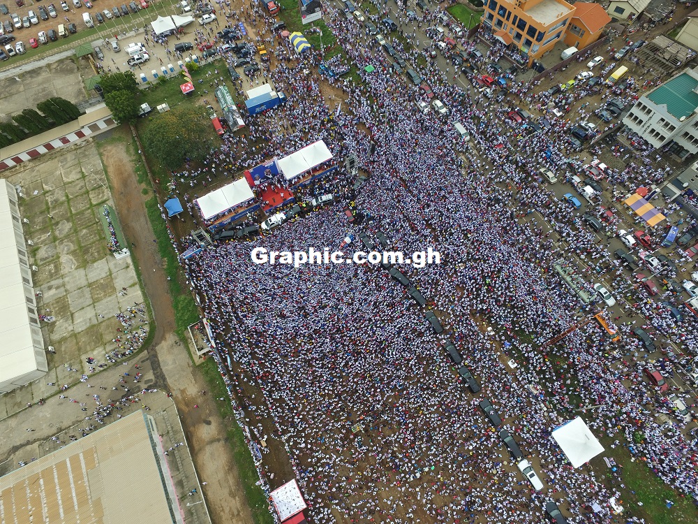 Thousands of supporters of the New Patriotic Party (NPP) yesterday invaded the precincts of the Trade Fair Centre in Accra for a mammoth rally that climaxed the party’s 2016 manifesto launch.