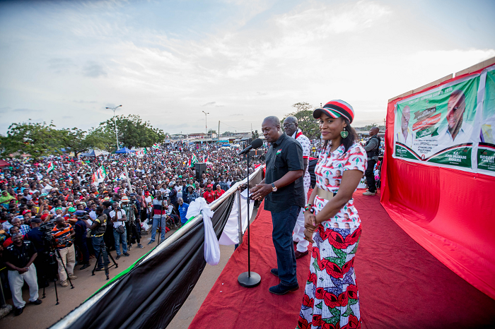 The mood of the big crowds was festive. As the crowd cheered, President Mahama said, "As Commander-in-Chief of the Ghana Armed Forces, l will ensure that the elections are conducted in a peaceful atmosphere".