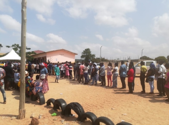 Hundreds of delegates at the Ledzokuku Constituency at Teshie joined long queues as early as 7 a.m to exercise their franchise in the ongoing presidential primary of the New Patriotic Party (NPP).