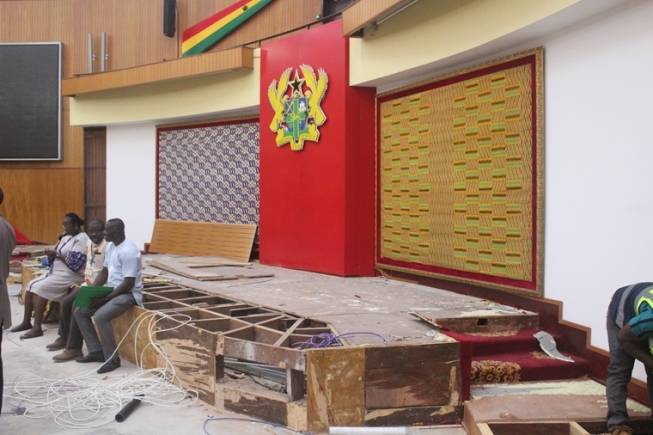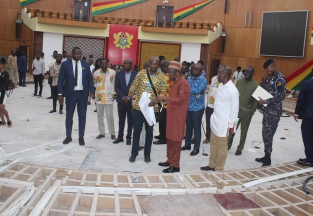 "I can decide to host them under a tree or even take them to Ho or elsewhere," the Speaker said jokingly when he inspected the progress of work within the chamber on Friday [August 23, 2024].