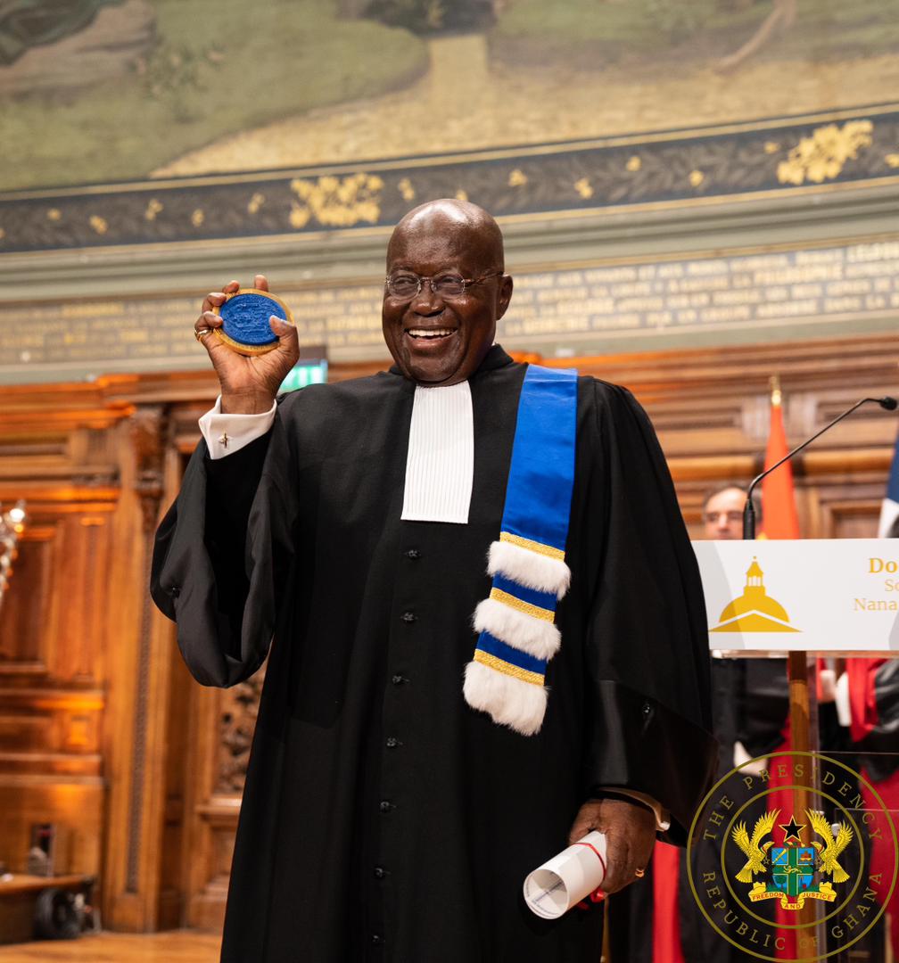 President Nana Addo Dankwa Akufo-Addo was on Monday presented with an honorary doctorate degree from the University of Sorbonne, in Paris, France, one of the most prestigious universities in Europe and the world.