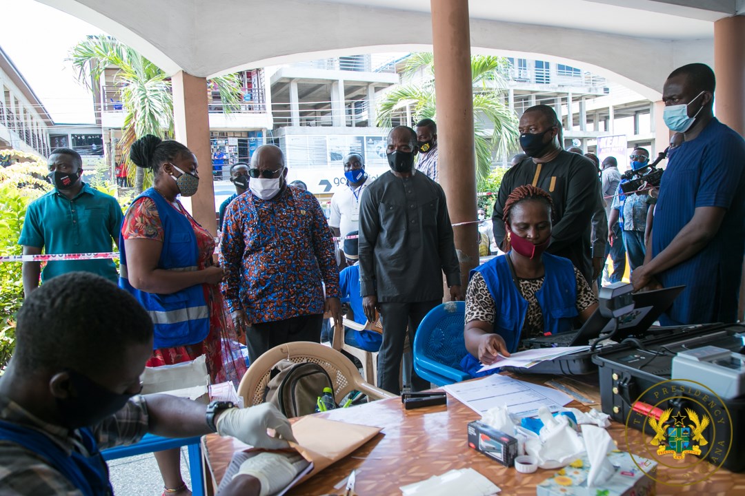 Impressed by the process and how smooth it was, President Akufo-Addo commended the registration officials for their diligence and encouraged them to maintain the high standards to ensure that all eligible persons who got to the centres were registered.