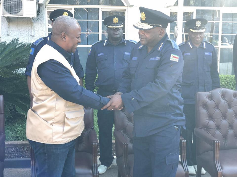 Former President John Dramani Mahama Sunday morning met with the Commissioner General of the Zimbabwe Republic Police, TG Matanga and his team to discuss their preparations for the country’s elections slated for Monday, July 30.
