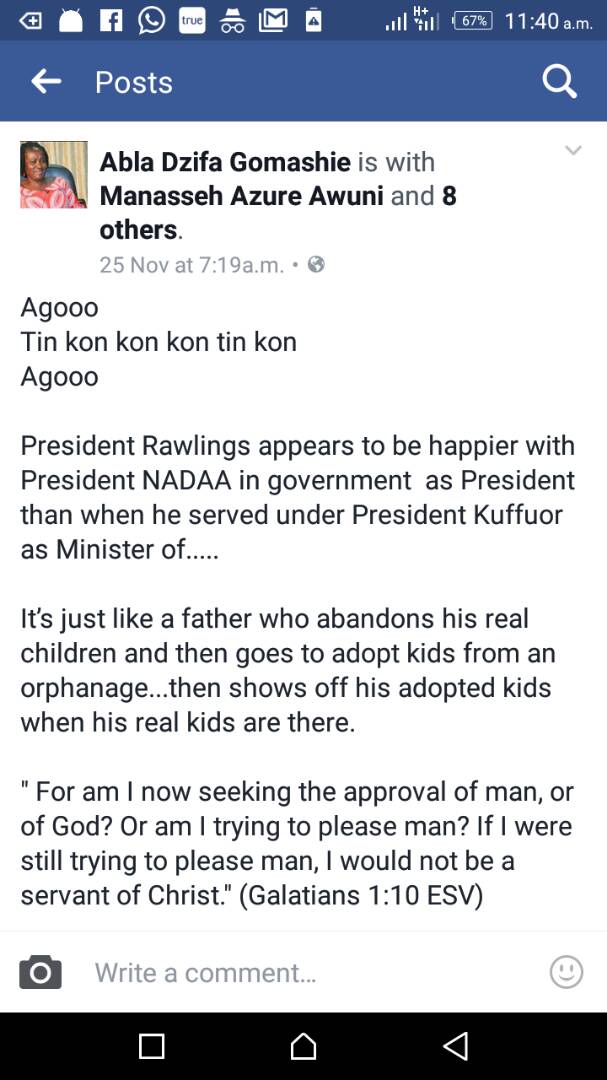 "President Rawlings appears to be happier with President NADAA in government as President than when he served under President Kuffuor as Minister of.....