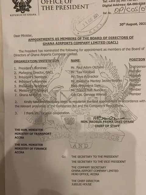 It will be recalled that Mr Adom-Otchere was also on the board of the National Communications Authority (NCA) during President Akufo-Addo's first term.