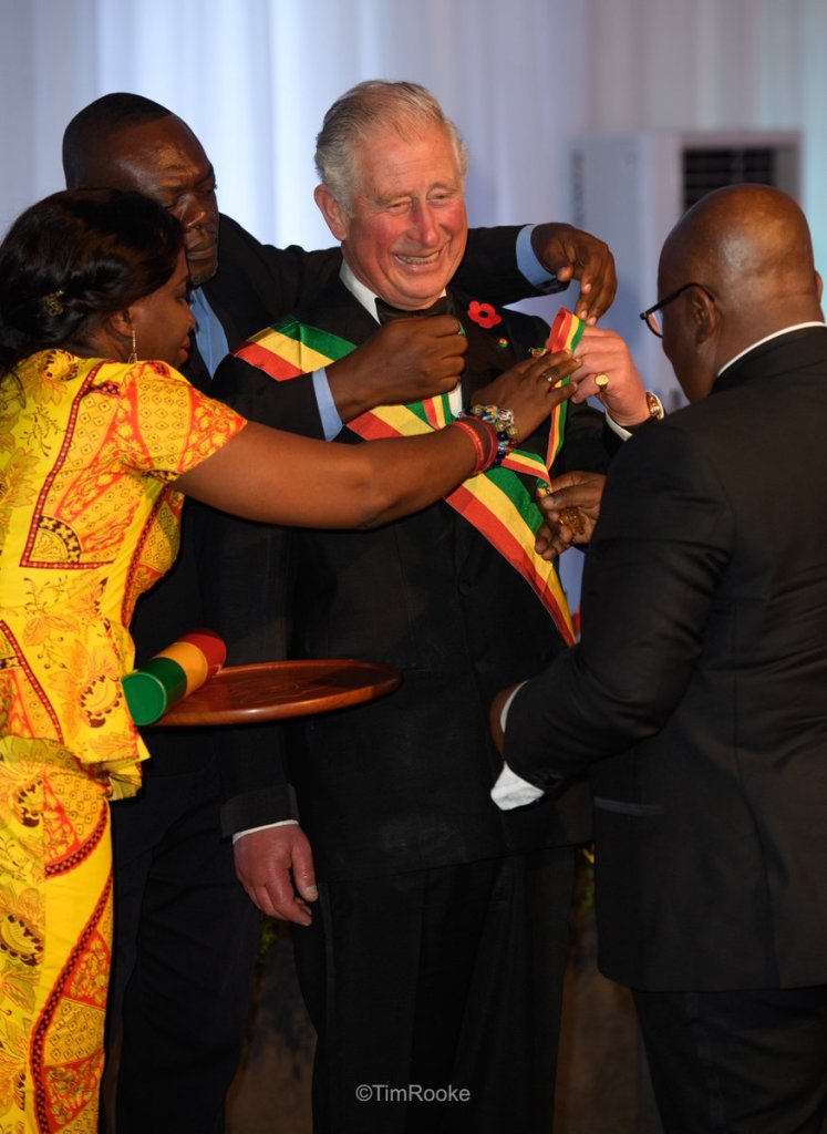 The visiting Prince of Wales, Charles, has been presented with the Companion of the Order of the Star of Ghana.