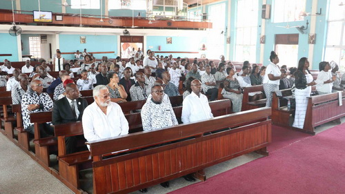 Former President Jerry John Rawlings, National Democratic Congress (NDC) party chairman, Samuel Ofosu Ampofo and other leading members of the NDC were among the congregants at a memorial mass marking the fifth anniversary of the demise of Mr. Paul Victor Obeng held at the Good Shepherd Catholic Church in Tema Community Two on Friday.