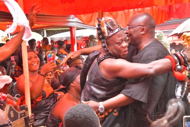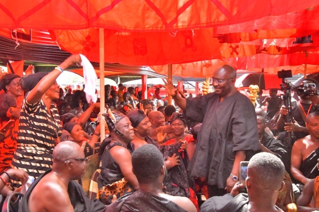 As news spread of Dr. Bawumia's arrival, scores of people rushed out to catch a glimpse of him, and many others led him in a slow procession from the main street to the funeral ground, amidst chants of his name.