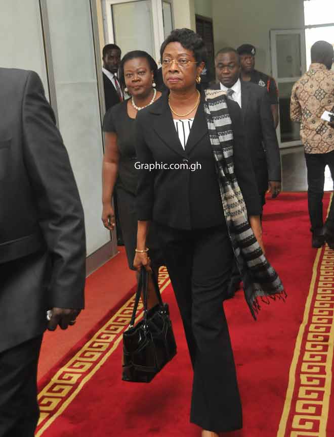 Justice Sophia Akuffo arriving at the Parliament House to appear before the Appointments Committee