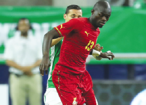 Black Stars’ Ebenezer Ofori outmuscles Mexico’s Rodolfo Pizarro during a challenge for the ball