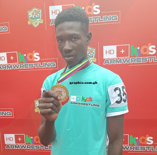 The 16-year-old from the Fadama Armwrestling Academy pulled four other contestants on his way to the final where he dispatched Kweku Asante Kissi Baah Amoah to emerge champion.