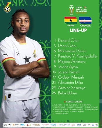 The midfield features a double-pivot pairing of Majeed Ashimeru and Iddrisu Baba, tasked with controlling the tempo against Cape Verde.