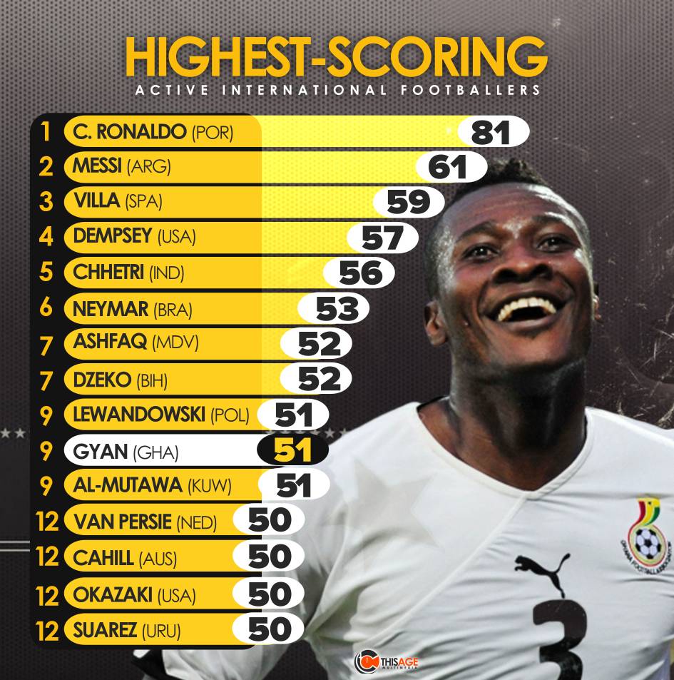 Gyan, 33, is the all-time leading goalscorer of the senior national team (Black Stars) with 51 goals in 106 appearances.