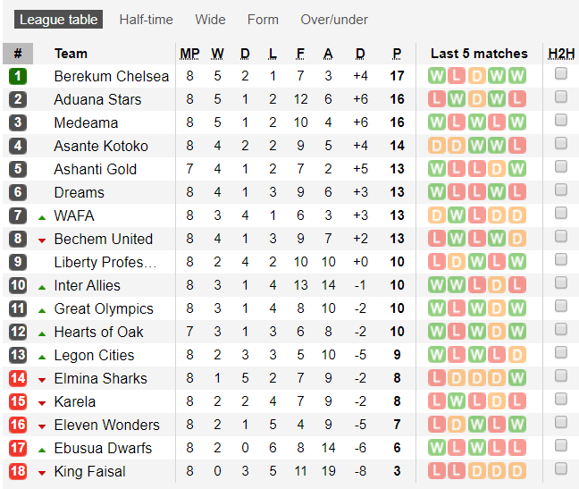 Berekum Chelsea go top of Ghana Premier League after 8 games