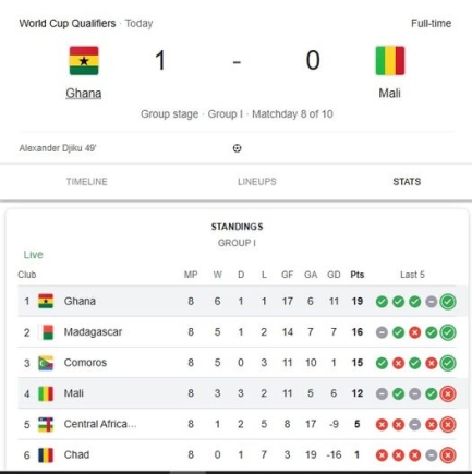 The victory leaves Ghana in a commanding position in Group I as the road to the 2026 FIFA World Cup continues.
