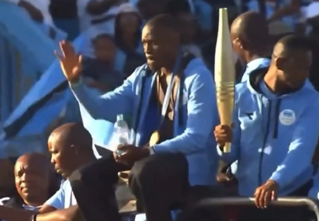 Before Tuesday's celebration at the stadium, hundreds of supporters from the southern African country gathered at Gaborone's airport to get the first glimpse of their Olympic team.