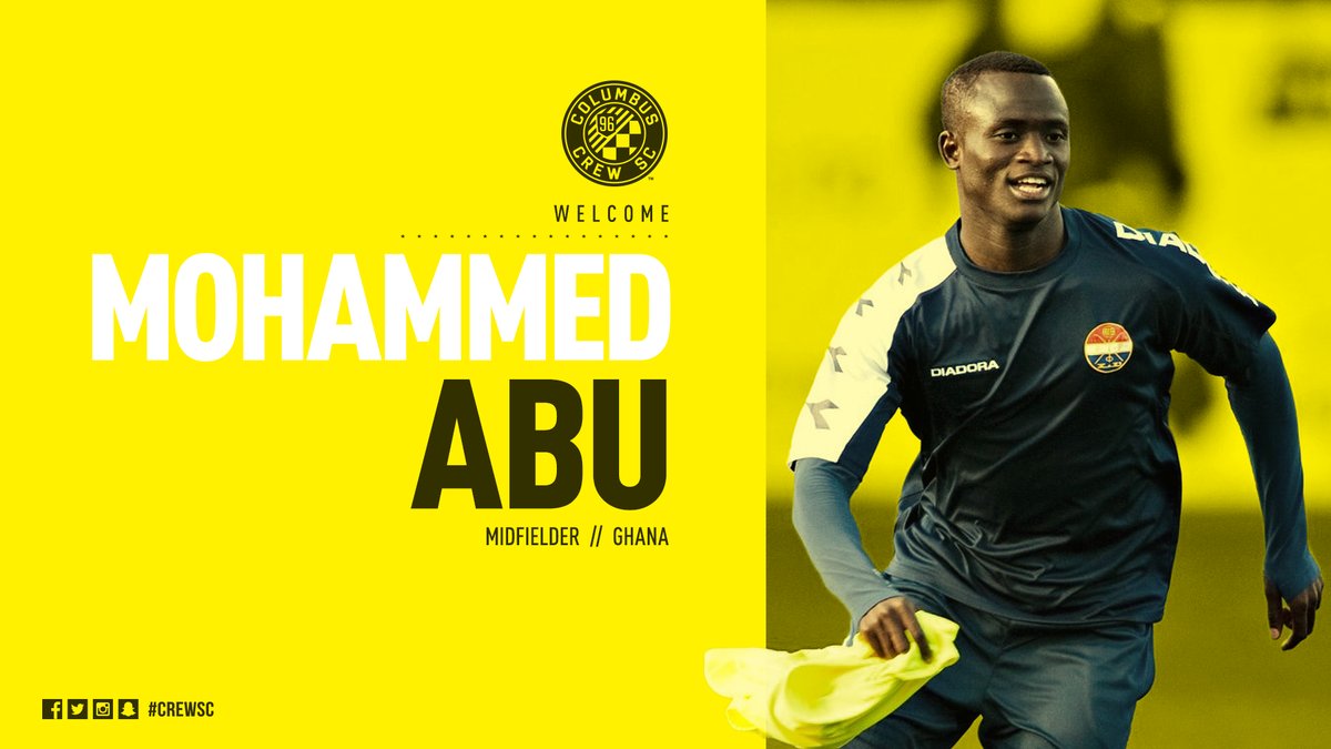 Major League Soccer side Columbus Crew SC have announced the signing of midfielder Mohammed Abu as a Special Discovery Player.