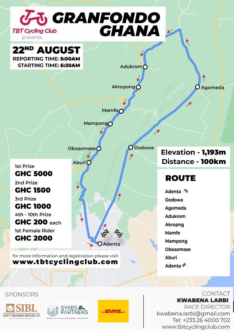 "This race is being organised by TBT Cycling Club with a vision to promote grass-root cycling in Ghana as a means of recreational activities for cycling enthusiasts and to promote overall health and wellness for all age groups".