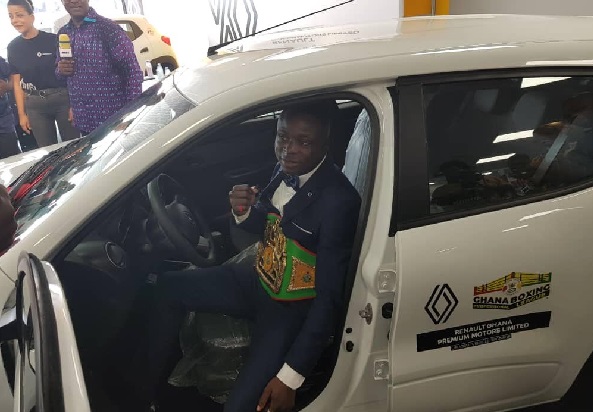 Charles Tetteh of Panix Gym and the Charles Quartey Boxing Foundation (CQBF) have been presented with a Renault Kwid saloon car each by Renault Ghana (Premium Motors) as their prizes for emerging Overall Best Boxer and the Best Gym for the maiden De-Luxy Professional Boxing League.