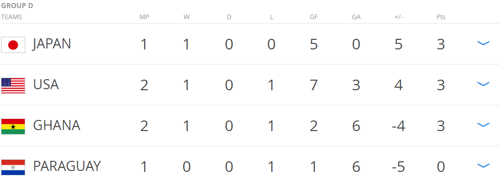 The result left Ghana tied on three points with leaders Japan and USA after two games. Japan face Paraguay later tonight in their second game.