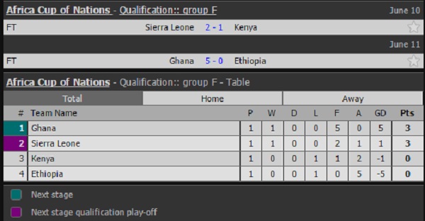The Stars and Sierra Leone both have three points each after the latter defeated Kenya 2-1 on Saturday in the other Group F clash.