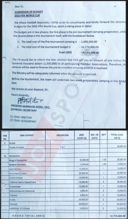 The Ghana Football Association (GFA) allocated $408,800 for per diem expenses for the Black Stars' 28-day stay at the 2022 FIFA World Cup, according to budget documents submitted to the Ministry of Sports and Recreation.