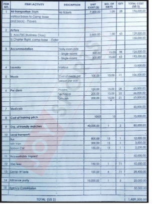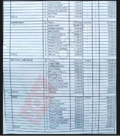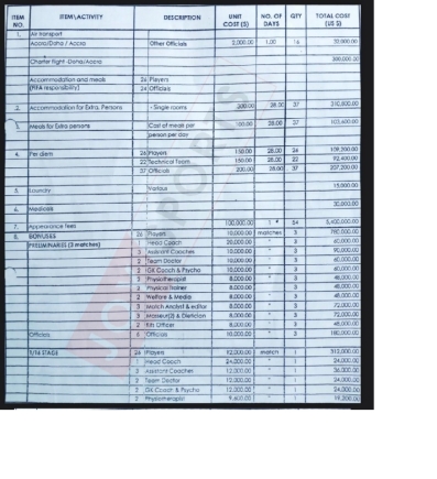 A key discrepancy involves the budget for player flight tickets. Despite some Black Stars players already being in Qatar prior to the tournament, the document lists a $300,000 charter flight cost for team transportation. It remains unclear why airfare expenses were accounted for all players when some had already arrived for the pre-tournament camp.