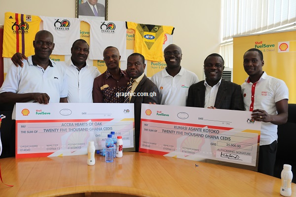 Officials of Hearts and Kotoko pose with the Vivo Energy Ghana cheques
