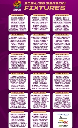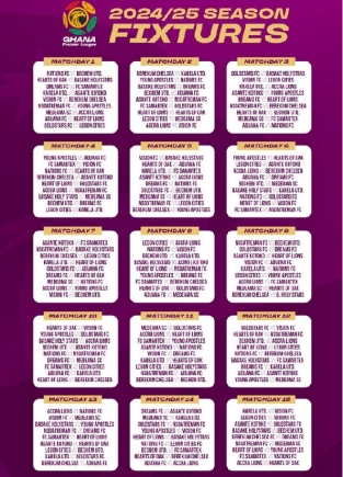 Full fixtures for the 2024-25 Ghana Premier League season.