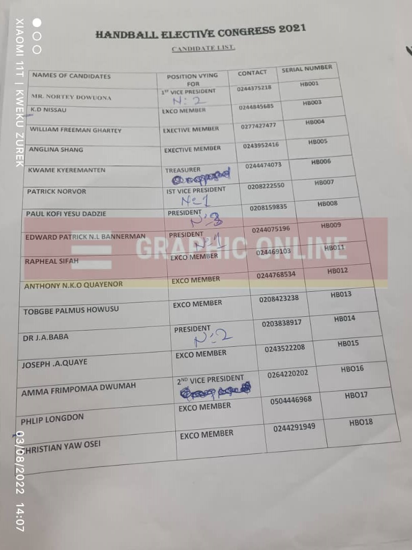 The Independent Election Committee overseeing the Electoral Congress of the Handball Association of Ghana has approved three individuals to contest the Presidency.