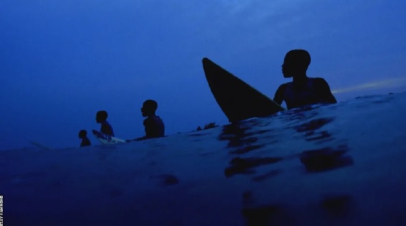 A few months later in Busua, a small Ghanaian fishing town, they focused their camera on some surfers bobbing in the Atlantic and the blue morning light.