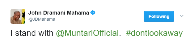 However, Mr Mahama has expressed his support for Muntari's actions in the tweet below.