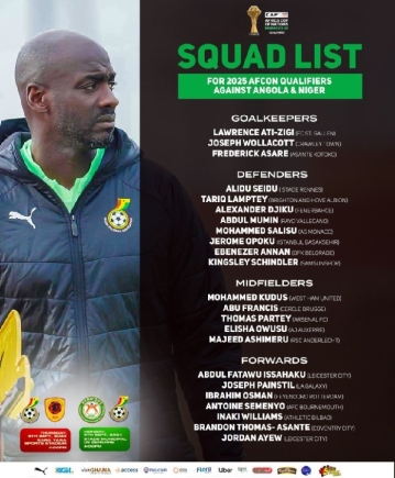 Head Coach of Black Stars, Otto Addo has unveiled his 23-man squad for the 2025 Africa Cup of Nations (AFCON) qualifiers against Angola and Niger, which are set for early next month.