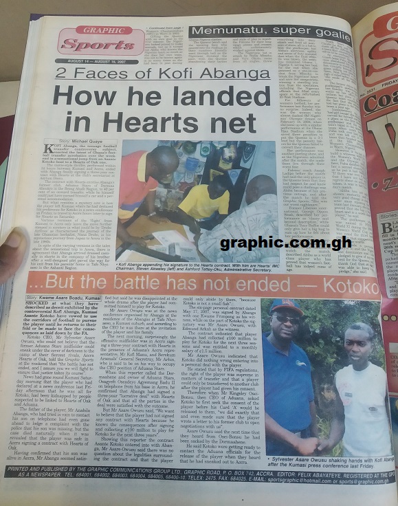 Speaking to GraphicOnline 13 years after starring in perhaps the Ghana Premier League's biggest transfer story, Abanga says it was a no-brainer when the time came for him to choose between Hearts and Kotoko.