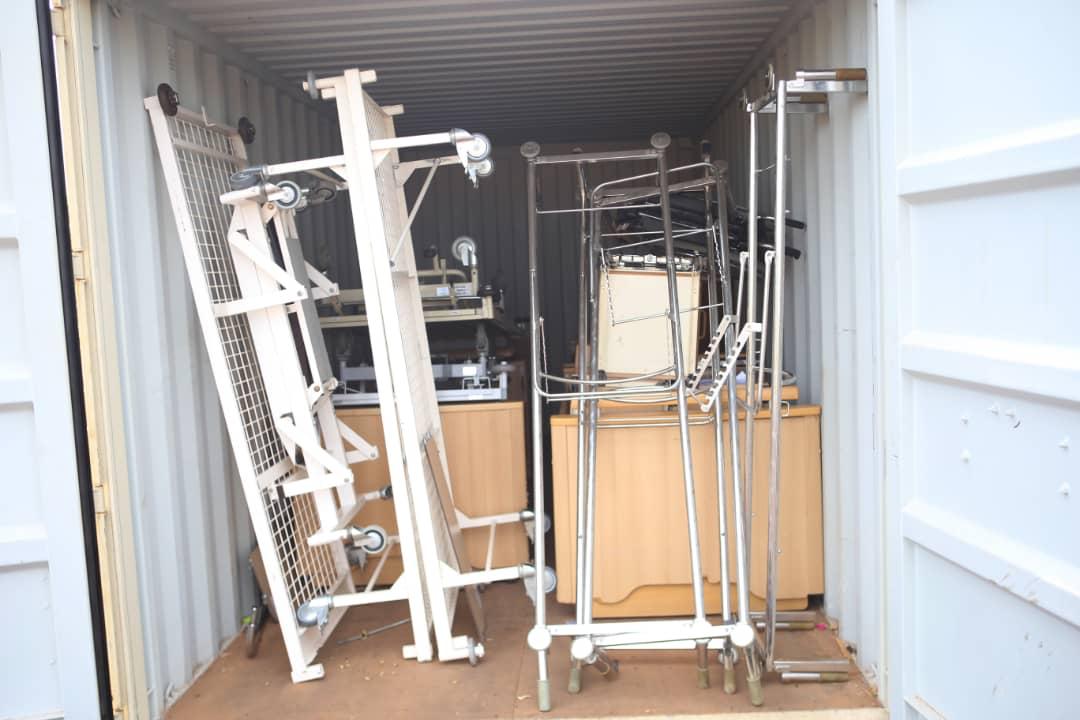 The items presented included 500 Personal Protective Equipment (PPE), 516 disposal bedsheets rolls, 50 each of Canula S14 and S18s, 55 Video Laryngoscopes and 28 Dissecting Forceps, 21 Bedsteads, 12 Bedside Desks, Carrier Stretchers and an Examination Bed. The rest are Wheel Chair, Food Trolleys, Metro Shelving, Suction Machines and Gaskets, Nebulizers, vacuum seals, patient strap, dissecting forceps, vagina speculums, an aneroid sphygmomanometer, thermometers, Ambu bags, bar soaps, tissue rolls, sanitizer dispensers and a host of other equipment and numerous assorted disinfectants.
