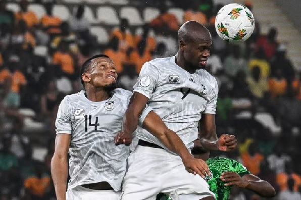 120' Yellow card to William Troost-Ekong who yanks Mihlali Mayambela down before the South Africa substitute can counter-attack. It's a professional foul as he absorbs a booking to prevent Bafana Bafana from breaking away.